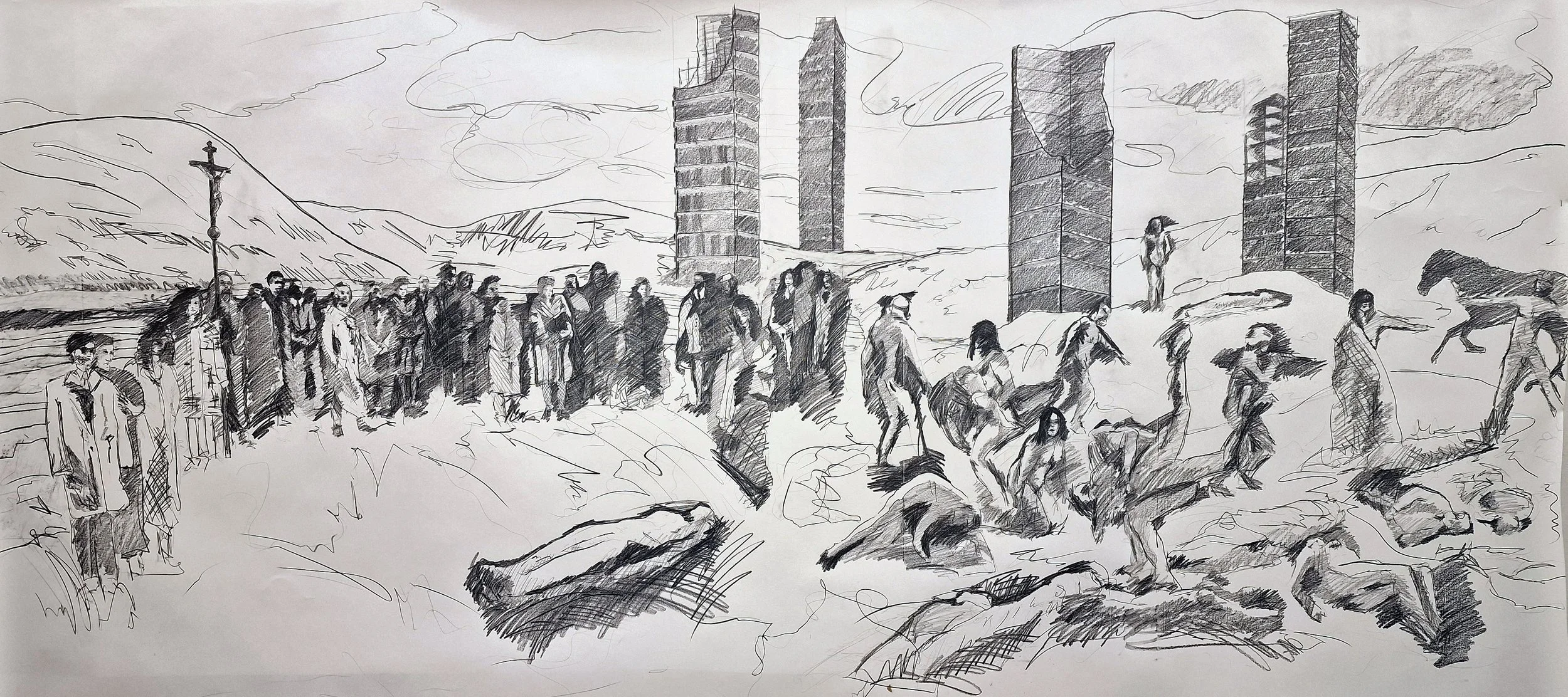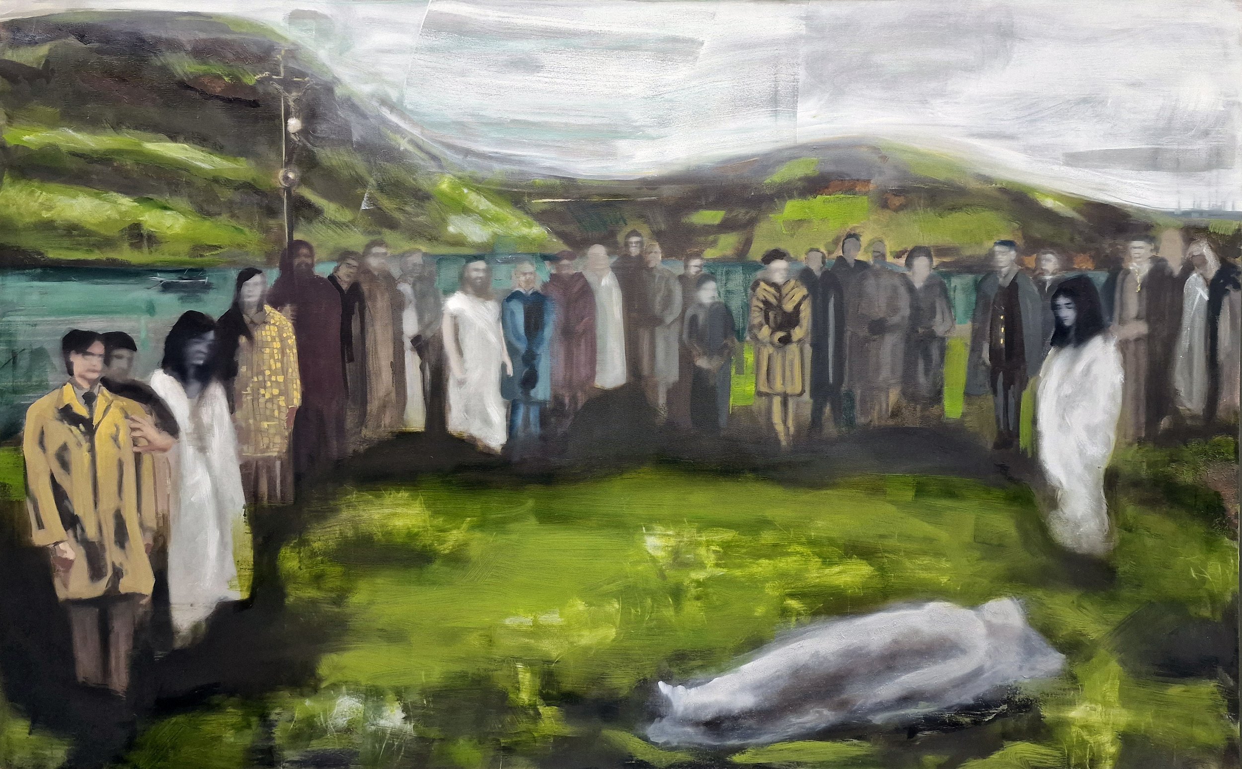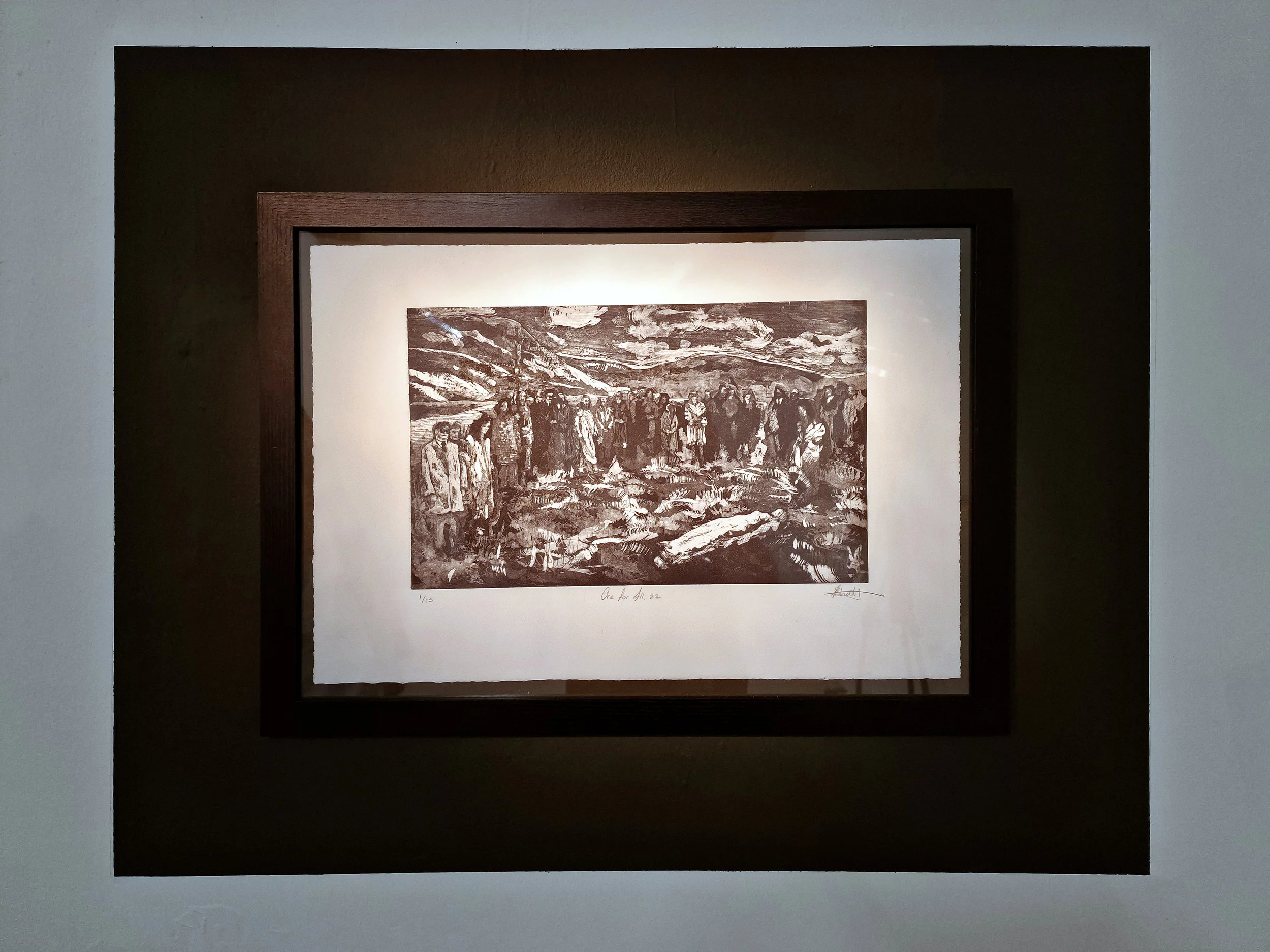 These works form an earlier stage in my practice, developed through etching, aquatint and painting. They explore fragmented figures, collective presence, and constructed landscapes—ideas that continue into my current work. Printmaking provided a way of building images through layers, erosion, and reconstruction, establishing a visual language that now informs my painting.