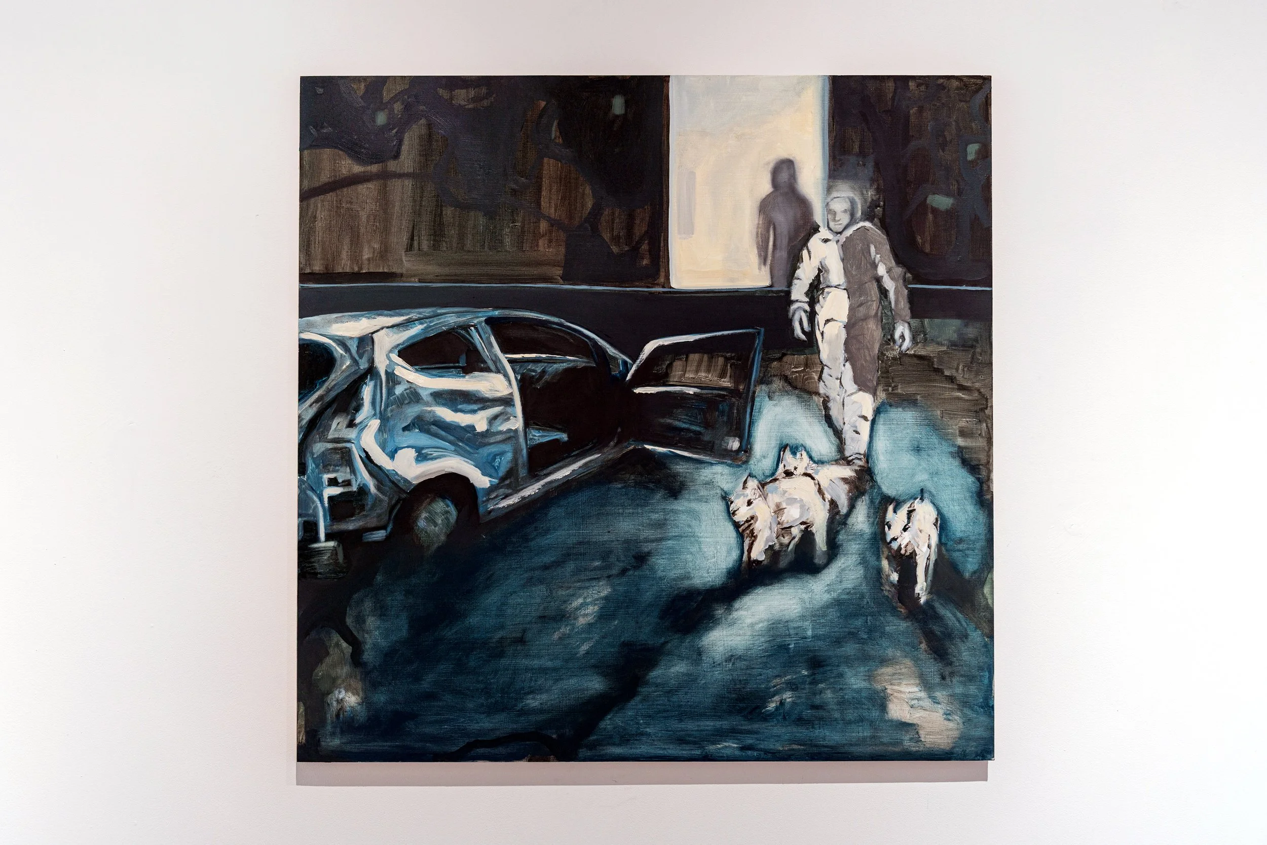 This painting forms part of an ongoing exploration into constructed imagery and memory, combining observed and mediated sources. The work draws on cinematic composition and painterly fragmentation to create a sense of ambiguity, where narrative is suggested but not fixed.